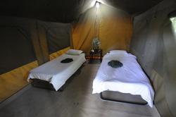 For the more budget-conscious traveller still looking for some creature comforts, Kwalape offers 12 comfortable canvas Safari Tents. The safari tents have two single beds complete with bedding and are equipped with a fan, bedside table, power point, and lamp.