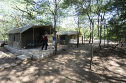 The Safari Tents are serviced on a daily basis for your comfort and enjoyment. Each safari tent has a small patio leading out into a natural garden. The safari tents and campers share the same ablution facilities located a short walk away.