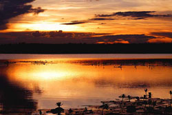 The ever-opportunistic tiger fish join in the hunt, while hundreds of Egrets, Darters, and Cormorants follow suit, and keen fishermen cast their lines to try to hook "the big one".