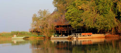 In the north-western corner of Botswana, situated on the banks of the Okavango River, in the panhandle of the Delta, you will find the lush green lawns and tall, shady indigenous trees, a paradise called Drotsky's Cabins.