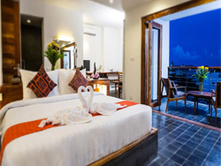 Deluxe Twin-Balcony Spread over 30sqm, with two twin size beds (1.20m * 2.00m), Deluxe Twin with private balcony, comfort and elegant, decor modern style and nice City view are new style designing the room as high quality; each has a balcony offering a view of either the beautiful an oasis of tranquility in the midst of this vibrant capital city with a spacious private bathrooms and a separate shower. Perfect for both the business and leisure travelers, our spacious Deluxe Rooms are comfortable and convenient. |