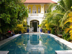 Located in the historical centre of Phnom Penh, the Pavilion is just a few steps from the Royal Palace and faces Wat Botum - the Royal Pagoda. Queen Kossamak, King Sihanouk's mother, reportedly built the main villa in the mid-twenties. Living here brought her closer to the Royal Pagoda, where she often liked to pray. The architecture is an original combination of Khmer and French colonial styles. Her villa has been turned to an intimate hotel, with the addition of a neighbouring building, known by the 1960's Phnom-Penhers as the Royal Palace's veterinarian's Residence and more recently with another one belonging to a senator. The tropical garden, pool, spa and gym are surrounded by high walls, protecting their intimacy from the city. |