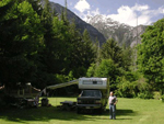 on 8 ha (20 ac), full and partial hookups, firepits, hot showers,