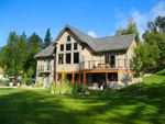The 0.4 ha (1 ac) property features lush gardens, orchard