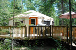 Forest. Flora Bora’s year-round yurt lodgings sit amid