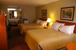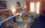 queen beds in most rooms, 27" TVs, cable, local calls,