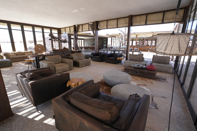 The exquisitely decorated lounge area creates the perfect space to spend a day of relaxing and admiring the desert from.