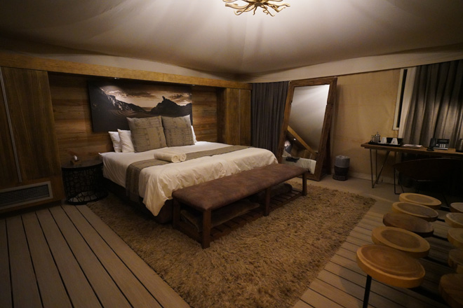 The eco-friendly designed luxury tents are climate controlled to afford not only comfort, but exquisite luxury within their arid surroundings.