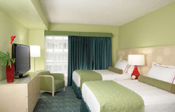 City View Two Double Beds A vibrant and playful atmosphere welcomes guests to these laidback rooms with a refreshing color pallet, two double beds, Waikiki kitchenette with a nook, complimentary wired and wireless connection, Kona coffee, complimentary in-room bottled water upon arrival, microwave, compact refrigerator, wet bar, and Lather bath amenities.
