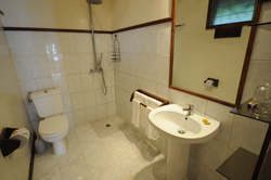 three rooms have their own shower but a shared toilet. Bungalow features a fan, mini bar, safe room and a large