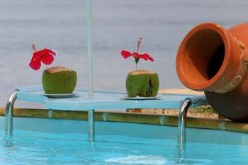 Price Guide 2008: Vanivola Double Rooms (no terrace) There are also 5 spacious and comfortable rooms with double beds. Vanivola RestaurantThe restaurant at Vanivola seats 50 people asn is made up of a beautiful room decorated with elegance, with a stage hosting a piano and a sound equipment and karaoke entertainment, bar and terrace by the pool, facing the ocean. There is a daily menu, specialties include: Carpaccio of Grouper, Tarte St. Marien, green papaya with shrimp, crayfish three peppers, Tagliatelles pancakes with honey, lobster cooked to order to taste .... and of course, seafood, crustaceans and fish of St. Marie! Vanivola BarAllow yourself to enjoy the Vanivola cocktails on the terrace overlooking the ocean or the pool.