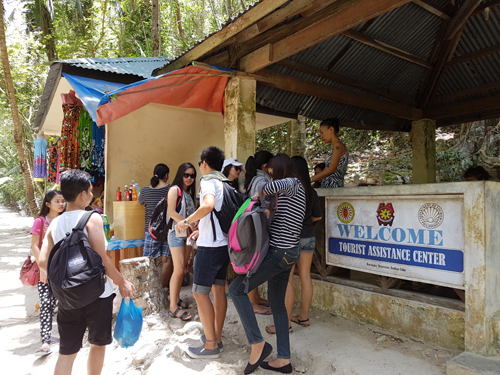 About halfway along the path you will come to this small shack beside the road where they shout at you as you walk along to come and pay the entrance fee ... and this is where I really start to get upset ... in 2015 fees were P10 for everybody, in 2016 its P20 for Filipionos and P40 for foriegners, now this is not a great amount of money I know but it is purely money making like all the other things going on at the falls, and they are not even looking after the falls, river or surrounding area with the money, rubbish is scattered along the path and in the river and at the falls you have to pay for everything including the toilet - as a result I saw several visitors just standing beside the path in full view having a toilet break!