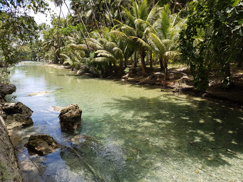 Follow the path beside the picturesque Matutinao River which would be a