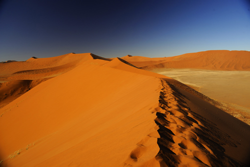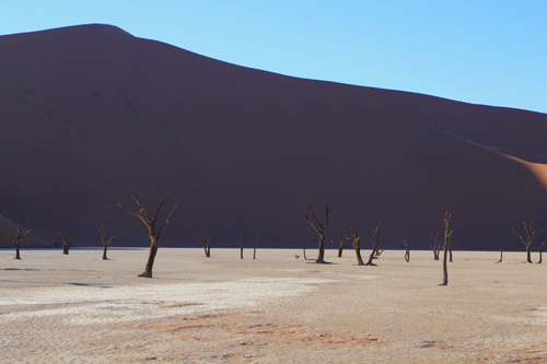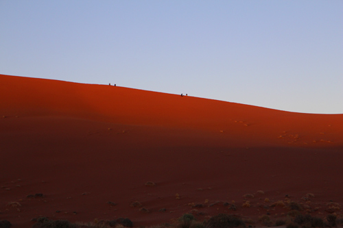 ... then the full glow of the Namib dunes pushes out, the vibrant iron rich sand has a gorgeous red hue which set against the clear blue blue sky makes for hard to believe photos but it doent take long before the sun is right overhead and the colours although still beautiful pale a little and the temperature rises quickly.