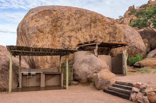 The campsites are set between massive boulders and each site has its own, private ablution facility - including a shower, basin and toilet. There is a shaded area with a table and bench and barbecue facilities. A kitchen wash-up area is also available. The boilers which provide hot water are lit on request, so please arrange this when checking in.