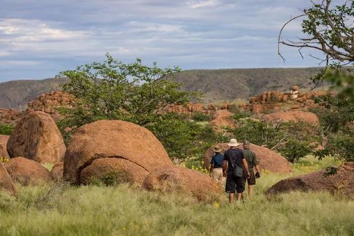 Mowani Mountain Camp offers 7 exclusive campsites, set between massive ochre boulders, not far from Twyfelfontein and central to the huge variety of attractions of Damaraland.