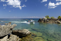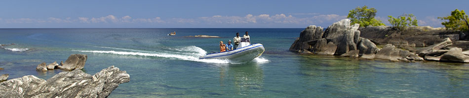 You are in Africa, sitting under the shade of a fig tree, looking out over one of the world's largest freshwater lakes. To your right rock pools filled with crystal clear water, teem with fluorescent coloured fish darting amongst smooth ancient boulders. On your left lies a white sandy beach stretching away from you, backed by pristine forest. All you can hear is the warm waters of this tropical lake lapping against the beach. Out on the lake the silhouette of a fisherman in his wooden canoe passes by as he paddles home with his day's catch. Sounds like the perfect place to relax? At Nkwichi Lodge, on the shores of Lake Niassa in Mozambique, it's just the end of another day in this peaceful corner of Africa.