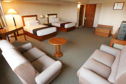 90 guest rooms and Junior Suites are all furnished with first class Myanmar Teak Wood and all rooms are individually air-conditioned. All rooms provide IDD service and 15 different satellite TV channels broadcasted from all around the world. Guests can come back to relax and rejuvenate with bathtub and pressure re-enforced hot water shower.