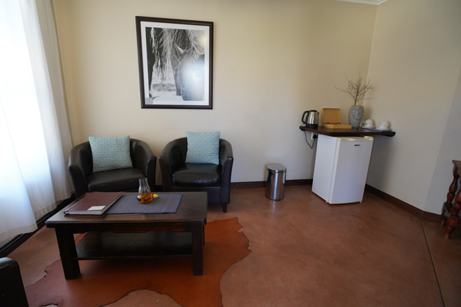 Each bedroom also has its own outside entrance. In addition to these 4 individual rooms, it has a further 20 standard rooms in slightly more modern and newer chalets. The rooms are spacious with en-suite bathrooms and each room has a fan, fridge, tea / coffee making facilities, a safe and mosquito nets.