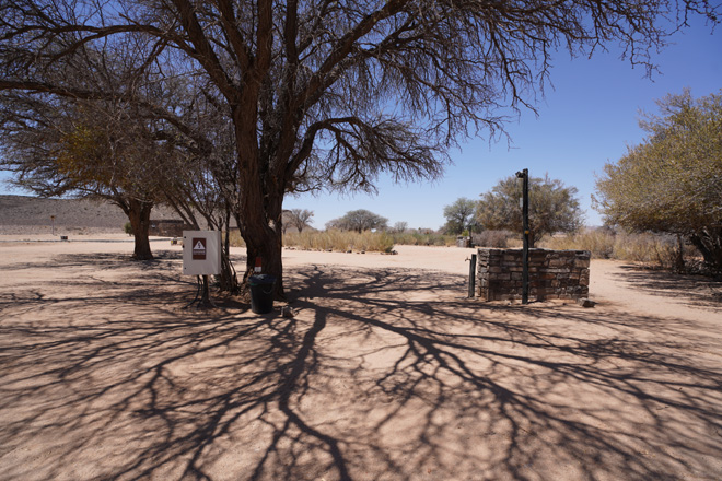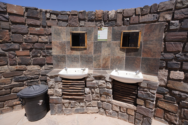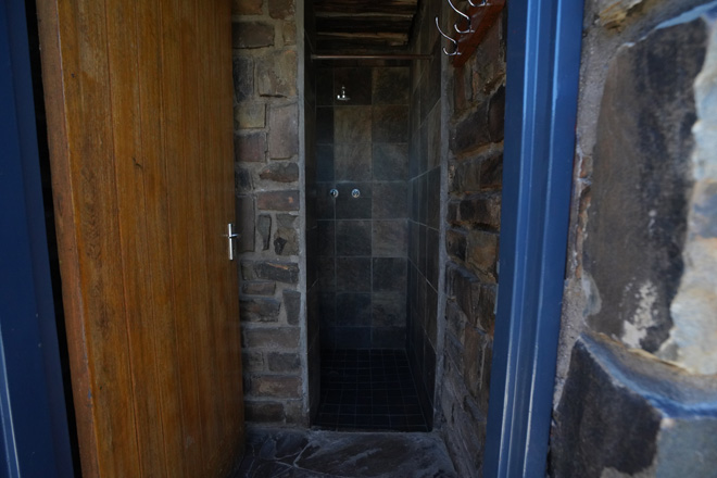 The twelve shaded campsites are spacious and accommodate up to 10 persons each. The stone-built shared ablution facilities have hot showers and flushing toilets.