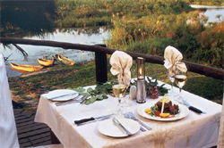The lodge prides itself on it's excellent cuisine, in a variety of romantic settings, including a picnic on a wild island! Special dietary requirements can be catered for. (Inform reservations in advance). The bar is fully-stocked, and their comprehensive range of South African wines is second to none, a remarkable achievement considering the remoteness of the destination!
