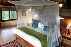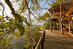 The airy thatched dining, lounge and bar areas, library and curio shop have been built using local craftsmen and natural materials. They open out onto spacious, split-level wooden decks, affording sweeping views over the Lianshulu Lagoon.