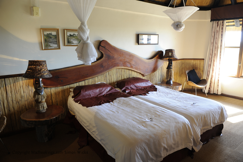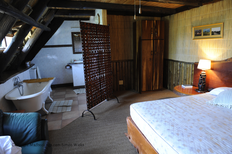 The three-levelled thatched complex and 2 Chalets can accommodate up to sixteen people (plus 2 guides) sharing. There are eight bedrooms, two which are equipped with double beds, and all have en-suite bathrooms.