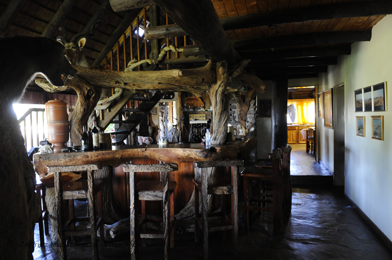 The garden is shaded by worm-bark false-thorn trees (Albizia Anthelmintica) and overlooks a floodlit waterhole where game and birds flock during the day. Natural building materials were used.