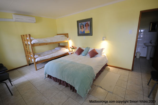 - 4 five-bed en-suite rooms with a double bed and 2 or 3 single beds. These rooms have ceiling fans, satellite TV, tea/coffee facilities, and a telephone.