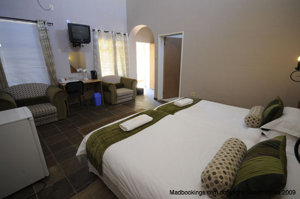 The hotel has 23 en-suite air-conditioned rooms. Each one of them is beautifully appointed and decorated with a tea / coffee station, direct dial telephone and TV (DSTV-5 channels). 6 of the rooms are equipped with fridges.