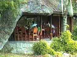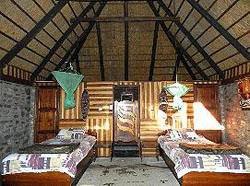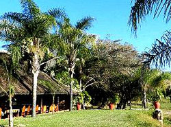 The N'Kwazi Lodge in Namibia has more than 12 thatched roof bungalows, each having an en-suite hot shower with basin and toilet, comfortable with two large single beds, linen and towels.
