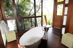 While reclining on the deck or soaking in the deep bath, the call of birds, frogs and little creatures that we came to love, will serve as background music.