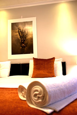 The luxurious honeymoon suite is furnished with a king-size bed and the en-suite bathroom has a shower and free-standing bath. The suite has a private entrance on the first floor and all the other amenities like Wi-Fi, TV with DSTV, an electronic safe and tea/coffee making facilities are available. Breakfast is included in the rates of the honeymoon suite.