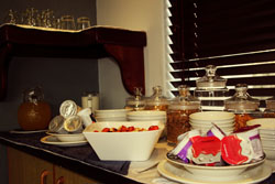 One of the Family Rooms is furnished with 3 single beds to accommodate a maximum of 3 persons on a bed and breakfast basis. This room has an en-suite bathroom with a shower and tea/coffee making facilities.