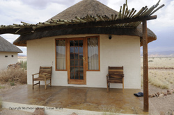 Desert Homestead offers 20 thatched, en-suite chalets, all luxuriously decorated in pale linens and dark wood riempie furniture. Each unit has its own verandah under a latte canopy with Northern views extending to the Rotterkaum Mountains, the ideal retreat after a busy day in the dunes.