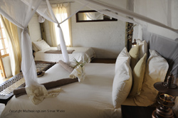 Inside they provide luxury, with large single or double beds and en-suite bathroom with shower and toilet. The lights and fans in the guest accommodation is powered by a bank of batteries, which are charged by wind and solar power during daytime. All our guest amenities are environmentally friendly.