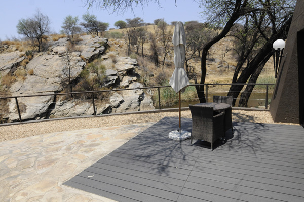 The lodge offers a range of facilities for all guests to enjoy, including a restaurant, bar, swimming pool, shop, viewing deck, and conference facilities. The Boma restaurant serves mouth-watering Saturday and Sunday lunches, as well as divine dinners, featuring a variety of Namibian dishes. The shop offers a selection of gifts and memorabilia, allowing guests to take home a piece of their Namibian experience.