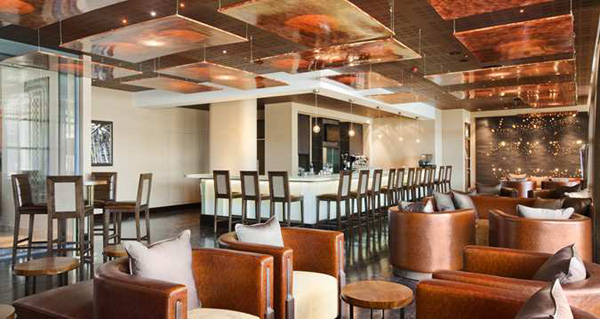 Centrum, located in the lobby of the Hilton Windhoek hotel, offers a relaxed ambiance with large bay windows and warm decor.