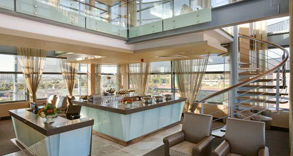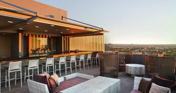 Skybar, adjacent to the swimming pool, offers stunning panoramic views of Windhoek, transforming into a chic lounge in the evening with cocktails and ambient music.