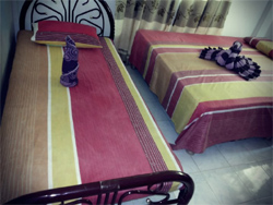 Deluxe room is good for three persons with basic amenities such as one double and one single beds, air conditioned, private bathroom with hot & cold shower, communal dining and living room, hair dryer (upon request).