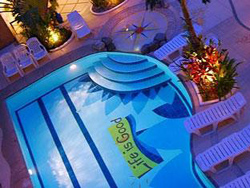 a beachfront lounge, swimming pool, indoor restaurant, roof deck and free