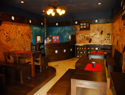 a pirate ship is wrecked in the middle of a 40 metre pool. Treasures and