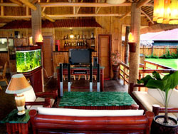The Restaurant is equipped with a bar and a karaoke. The resort has its own sweet water supply and is deep in the verdant vegetation. There is a vast assortment of international cuisine, Italian food, local fruits, fish and vegetables dishes and of course rice, disco night on request. The Swimming Pool is large and curvilinear. There is a separate children’s swimming pool. One can soak in the Jacuzzi Hydro Massage partly shaded by the palm trees with adjacent sun deck, chairs and tables under big umbrellas. The pool is supervised by a well trained personnel. Folk art performances may be scheduled. |