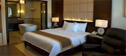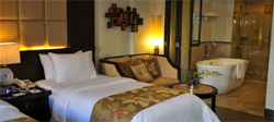 Grand room features 2 single beds or 1 king-sized bed with a balcony overlooking the pool. Amenities include 32-inch LCD TV, thread count duvet cover, bathtub with separate hot and cold shower, basic toiletries, JBL ipod dock with speakers.In-room safe, WIFI Internet access (with additional charge), refrigerator, coffee and tea making facilities and sofa at the seating area. Information booklet is also provided for the guests. |