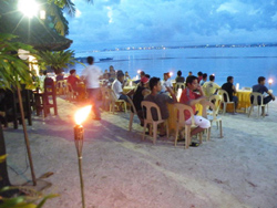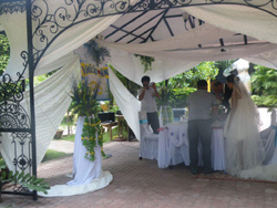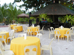 From here you may chose to visit nearby Vanishing Island or under your own power using our kayaks. As its name suggests, the island disappears under high tide, whereas low tide reveals dazzling white beaches under the Pagatpat trees. Accommodation at Hotel Precious Garden: The rooms are with pristine clean bathrooms / showers, air-condition, king size bed and intercom. Feel good in our widely 24 square metre rooms. Wake up in the morning and listening the songs of birds, inhale the fresh air during your complimentary breakfast on balcony or terrace. Your mind will be refreshed and your day will start well. Restaurant: Warm Welcome to Precious Garden Restaurant and Coffee House. Enjoy the ambiance and spend your precious time under old trees to enjoy our delicious food. We serve wood fire oven pizza and home made pasta, all kinds of Filipino dishes and various European food. Several times we won the cooking contests and also winner of mango pizza – unique in our country. To all dishes we serve biodynamic rice or fresh Precious Garden bread. We have the best coffee on island and home made cookies. Of course, we make fresh juices for your health. Seminars: We have a prestigious seminar room with air-condition, good for around 40 participants. In break time is Precious Garden the best place to rest your mind. Going around and marveling the bushes, trees and flower. Sit on the fish pound and have look how the kois are swimming and relax. Or you have a walk to the beach line and listening the waves. Sit down, enjoy and collect your strength to receptive the next lesson. Ask for our special prices and for brewed coffee, snacks, pastries and meals. Weddings: Wedding parties, birthday parties, reunions and all other occasions cannot be held in better ambiance. You have the choice to choose between on the beach side and on the garden side: On the beach side: You can have a trip to Vanishing Island, banana boat riding, kayaking or only relaxing in our beach bar in the sea. We have a stage for performers and also on beach bar, where we can serve for cocktails and any kinds of drinks. On the garden side: Beach: Precious Garden’s white sand beach is a leisurely stroll of less than 5 minute from the Garden Hotel and Restaurant. Even at low tide, our ‘Floating House’ provides a shaded and comfortable place from which to begin and end your swim. Features of Hotel Precious Garden