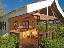 Deluxe Villas- The spacious 40 square meters Deluxe Villas offer a mix of native and modern design. They are integrated into the garden of Kawayan Holiday Resort.The boutique style villas with sea view have a half open, half round and modern bathroom, a bedroom and a private terrace to relax. |