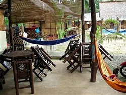 RoomsWe have 2 free standing air conditioned bungalows and 6 fan rooms for you to choose from. All of our rooms are constructed from native materials that really give our guests the feeling of rustic comfort and relaxation! Our air conditioned bungalows each have single and double beds. They can sleep 3 people comfortably. They also have TVs and DVD players for those days you wish to stay in and relax. We have fan rooms available as well. These rooms also have single and double beds that can