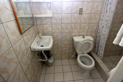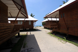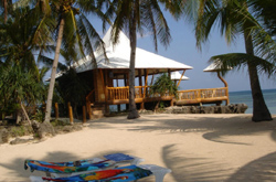 Our six cottages have a small terrace with a table and two chairs. They are furnished with two single beds (Cottages 2,3 and 6 now available with double beds), a dressing table, a cabinet, an electric fan (cottages 1 - 6 now available with aircon) and a bathroom with shower and wc. European standard is guaranteed. Unsere sechs Cottages haben eine kleine Terrasse mit Tisch und zwei Stühlen und sind eingerichtet mit zwei Einzelbetten (Cottages 2,3 und 6 jetzt auch mit Doppelbetten), einem Schminktisch, einer Garderobe, einem Ventilator (Cottages 1 - 6 jetzt auch mit Klimaanlage) und einem Bad mit Dusche und WC. Europäischer Standard ist gewährleistet. |