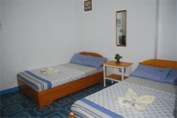 Our deluxe rooms are located on the 2nd Floor. They feature two double beds with air-conditioning, Cable TV, mini refrigerator and a private bathroom with hot & cold shower.