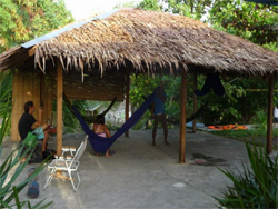 The only true "backpacker" accommodation on Malapascua Centrally located, but still secluded and green. Villa Sandra has plenty of social/chillout space, cheap local food available (60 peso+ mains), Malapascua's only rentable hammocks and even a selection of weights in it's small but growing gym. Locally run by cheerful Jun, helped by painter friends Kulot and Michael. Wide-ranging connections on the island mean almost anything can be arranged, including watersports, boat trips, transfers, paintings, dingies, you name it. Accommodation: Dorm, Single, Double, Double Ensuite, Twin, Hammocks and Tent |